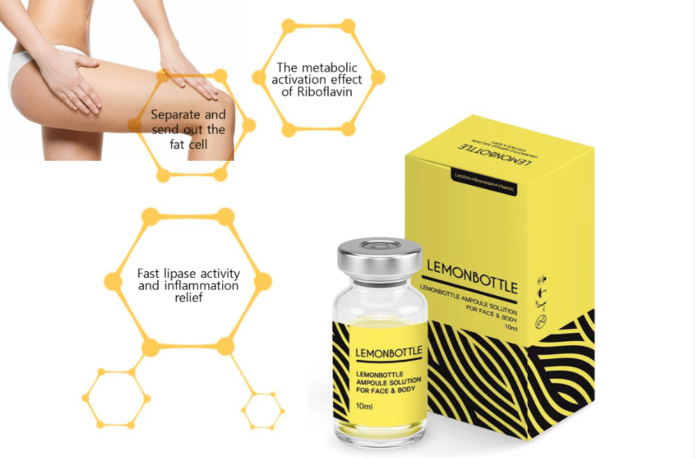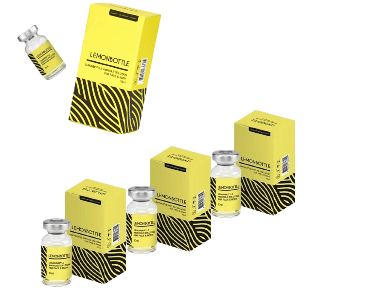 Lemon Bottle ist ein injizierbares Premium-Fettlösungsprodukt mit einer einzigartigen Mischung aus natürlichen Inhaltsstoffen, darunter Riboflavin (Vitamin B2), Lecithin und Bromelain aus Ananas Sativus (Ananas). Diese nicht-invasive, nicht-chirurgische Lösung hilft, hartnäckige Fettablagerungen zu reduzieren.